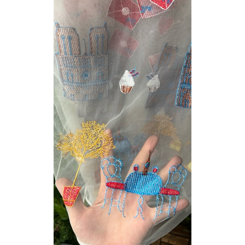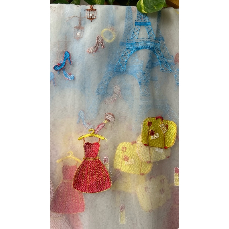 Vải Lưới (SLx0.5m khổ 1.3m) Thêu hình độc lạ, hình in chuẩn nét
