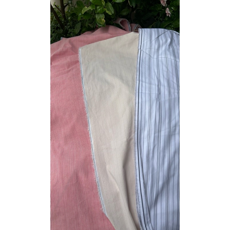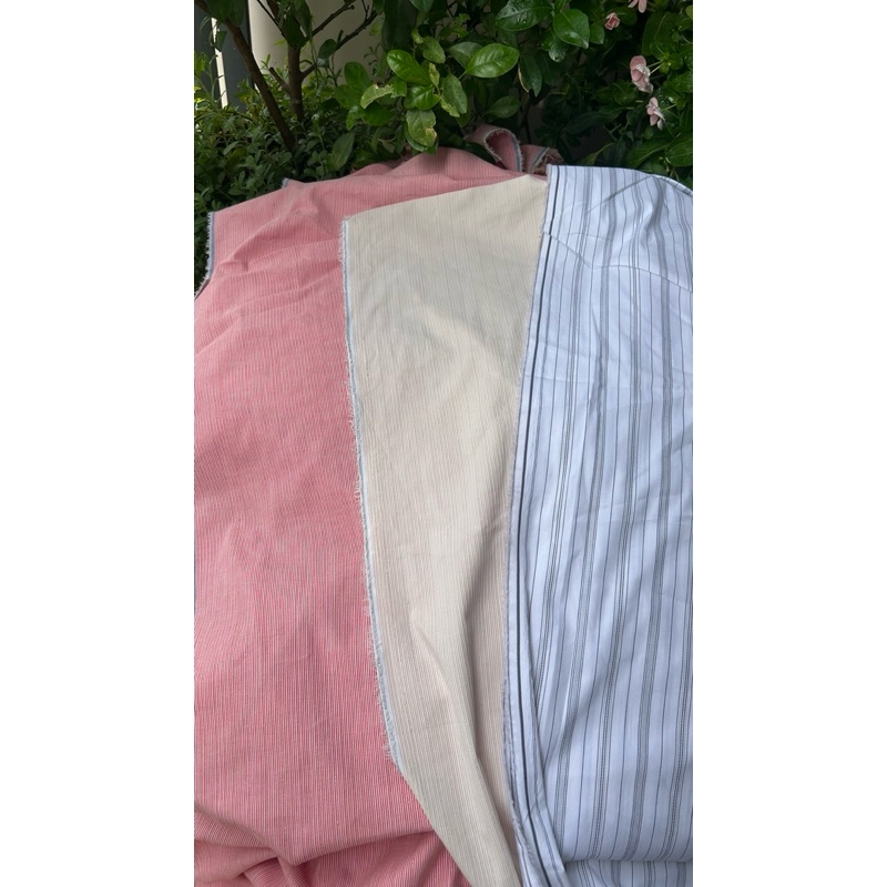 Vải kate (SLx0.5m khổ đa dạng) sọc có kim tuyến, co dãn nhẹ; phù hợp may áo, đầm, khăn trải bàn, picnic.