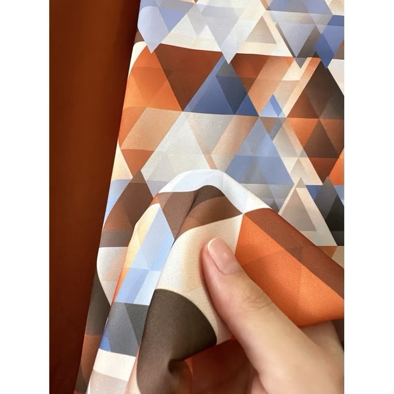 Chất liệu: Polyester cao cấp hoặc poly-spandex, được xử lý để mô phỏng cảm giác của lụa tự nhiên.