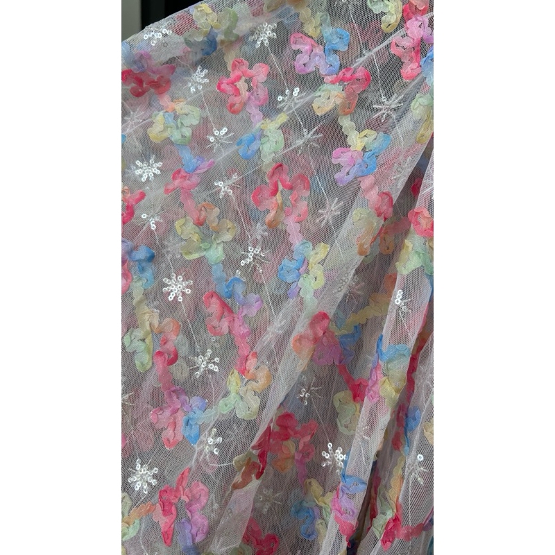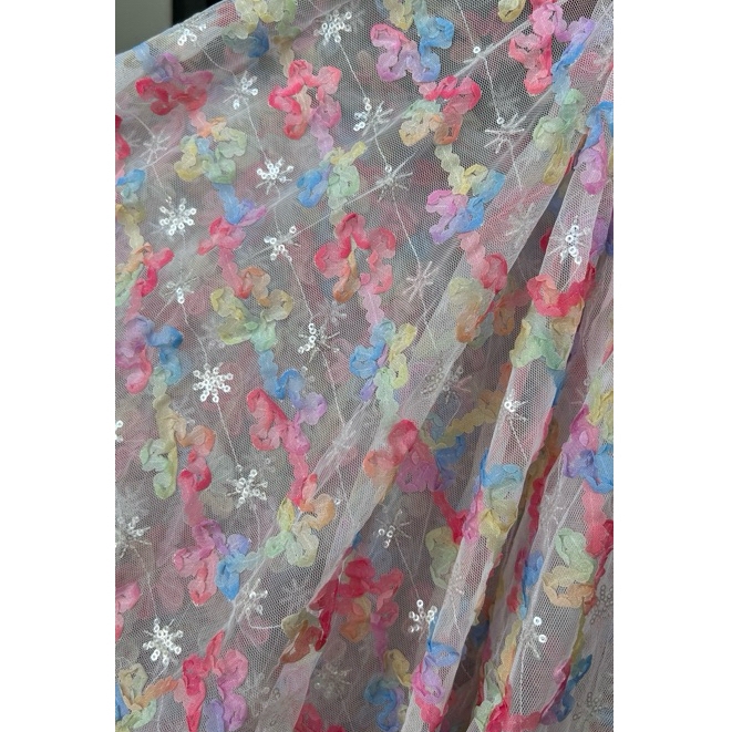 Vải lưới 3D (SLx0.5m khổ 1.4m) hoa hồng dây nhiều màu
