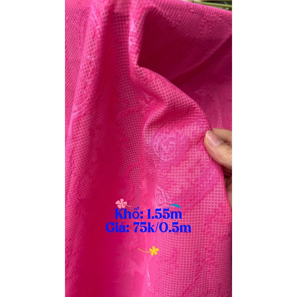 ***** LƯU Ý KHI CHỌN MUA HÀNG ***** 🧵 HƯỚNG DẪN MUA VẢI 💰 GIÁ BÁN: Giá hiển thị là giá cho mỗi 1 mét vải (chiều dài) 📐 KHỔ VẢI: Chiều ngang cố định: 1.5 mét 🛍️ CÁCH MUA VẢI: Vải sẽ được cắt liền mạch theo tổng chiều dài bạn chọn mua (❗Không cắt rời từng đoạn) Phân loại nhỏ nhất: 1 mét 📌 Ví dụ cách chọn số lượng: - Mua 1m vải: bấm 1 lần phân loại 1m. - Mua 2m vải: bấm 1 lần phân loại 1m. - Mua 3m vải: bấm 3 lần phân loại 1m 🧾 Ví dụ: Muốn mua 2m vải → chọn 2 lần phân loại 1m → bạn sẽ nhận được một tấm vải liền dài 2m, ngang 1.5m. 📩 Nếu bạn có bất kỳ thắc mắc nào, đừng ngần ngại nhắn tin cho shop! Shop sẽ phản hồi nhanh nhất có thể để hỗ trợ bạn 💬 ******Lưới ép hoa (SLx0.5m, khổ đa dạng)– vải dày, dùng làm khăn trải bàn, rèm cửa, decor... Chất liệu: Nền vải dạng lưới dày, có kết cấu chắc chắn nhưng vẫn giữ được độ mềm mại. Trên bề mặt được ép lớp hoa văn nổi (thường là hoa lá, dây leo hoặc hoa vintage). 🌿 Loại vải này rất được ưa chuộng trong các sự kiện tiệc cưới, setup không gian kiểu vintage hoặc trang trí theo phong cách châu Âu nhẹ nhàng. Bề mặt: Có độ thoáng nhẹ của lưới, kết hợp với phần ép hoa tạo nên hiệu ứng thị giác độc đáo — vừa sang trọng vừa lãng mạn. Độ dày: Dày vừa phải, có độ rủ lý tưởng để treo làm rèm cửa hoặc trải bàn không bị nhăn hay bay. Màu sắc: 💗 Hồng dâu: tươi sáng, rực rỡ, phù hợp không gian năng động, trẻ trung. 🌺 Hồng sen: màu trung tính, có chiều sâu, mang nét truyền thống và sang trọng. 🩷 Hồng phấn: nhẹ nhàng, dịu ngọt, thường được dùng cho không gian vintage, tiệc cưới hoặc phòng ngủ.