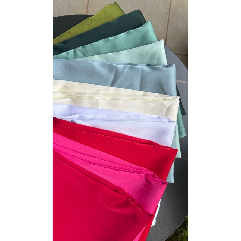 Chất liệu: Chủ yếu là polyester hoặc poly-spandex, mô phỏng cảm giác của lụa tơ tằm.