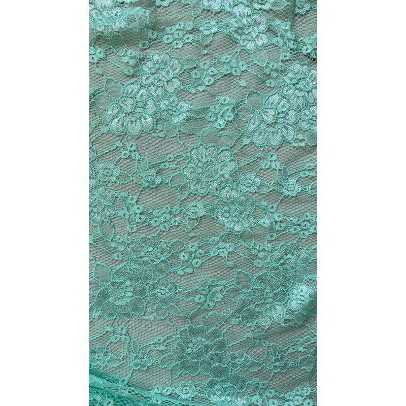 Vải ren (SLx0.5m khổ 1.5m) thêu bông màu xanh mint, mềm, co dãn, bông thêu sắc nét